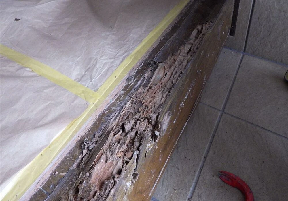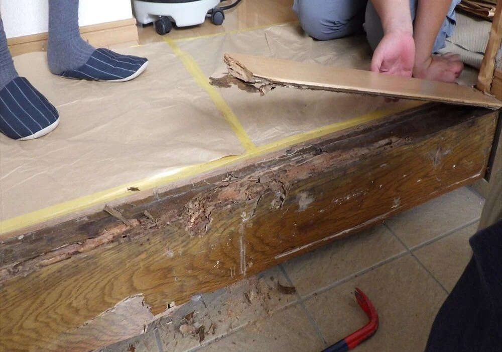 今回ご依頼いただいたお客様は、神奈川県茅ケ崎市にお住まいのK様。気が付いたときにはすでに、玄関框の部分にてシロアリの被害が確認できる状態でした。